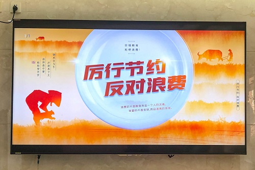 通過(guò)張貼海報、電子電視屏播放,餐桌擺放台卡等方式,大力宣傳提倡“文明餐桌”、“光盤行動”,引導幹部職工提高厲行勤儉節約、反對(duì)鋪張浪費意識,養成(chéng)愛惜糧食、文明餐飲習慣,踐行綠色低碳、文明健康生活方式,使“浪費可恥、節約爲榮”成(chéng)爲廣泛共識。
