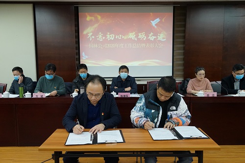 園林公司黨支部副書記、工會(huì)主席楊潔宣讀《關于表彰公司2020年度先進(jìn)個人的決定》領導班子爲2020年度園林公司“先進(jìn)工作者”頒獎。随後(hòu)公司黨支部副書記、總經(jīng)理朱強與安全質量部蔣輝平簽訂安全責任書。