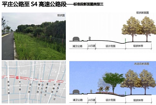 浦衛公路(耀光河-S4高速公路)兩(liǎng)側綠地從郊野公園規劃邊界的耀光河起(qǐ)始,至S4高速公路結束,全長(cháng)17km,寬度10-20米不等。項目總用地面(miàn)積330351平方米,其中新建綠地225955平方米,改造提升綠化104396平米。