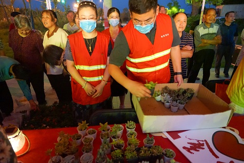 爲進(jìn)一步做好(hǎo)垃圾分類宣傳工作,讓社區更多居民了解分類、學(xué)會(huì)分類、主動分類,9月17日晚上,園林公司黨支部副書記楊潔一行前往金彙社區參加“紅心爲民·情滿中秋”納涼晚會(huì)暨金彙社區《紅色微集市》開(kāi)市儀式,將(jiāng)菊花、多肉、藍雪花、長(cháng)壽花、茉莉花等一百五十多盆花草帶到活動現場,免費發(fā)放給居民。