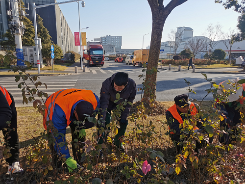 爲确保明年月季的景觀效果,奉發(fā)園林公司持續開(kāi)展月季冬季養護工作。