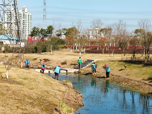 春季萬物複蘇,綠地内植物也開(kāi)始發(fā)芽生長(cháng),水體内綠萍開(kāi)始生長(cháng),鋪滿水面(miàn)後(hòu)會(huì)使水質溶氧功能(néng)降低,消耗水裡(lǐ)原有的氧,使水體内的魚窒息死亡。因此,公司立刻采取行動,打撈綠萍,還(hái)水面(miàn)清澈整潔。